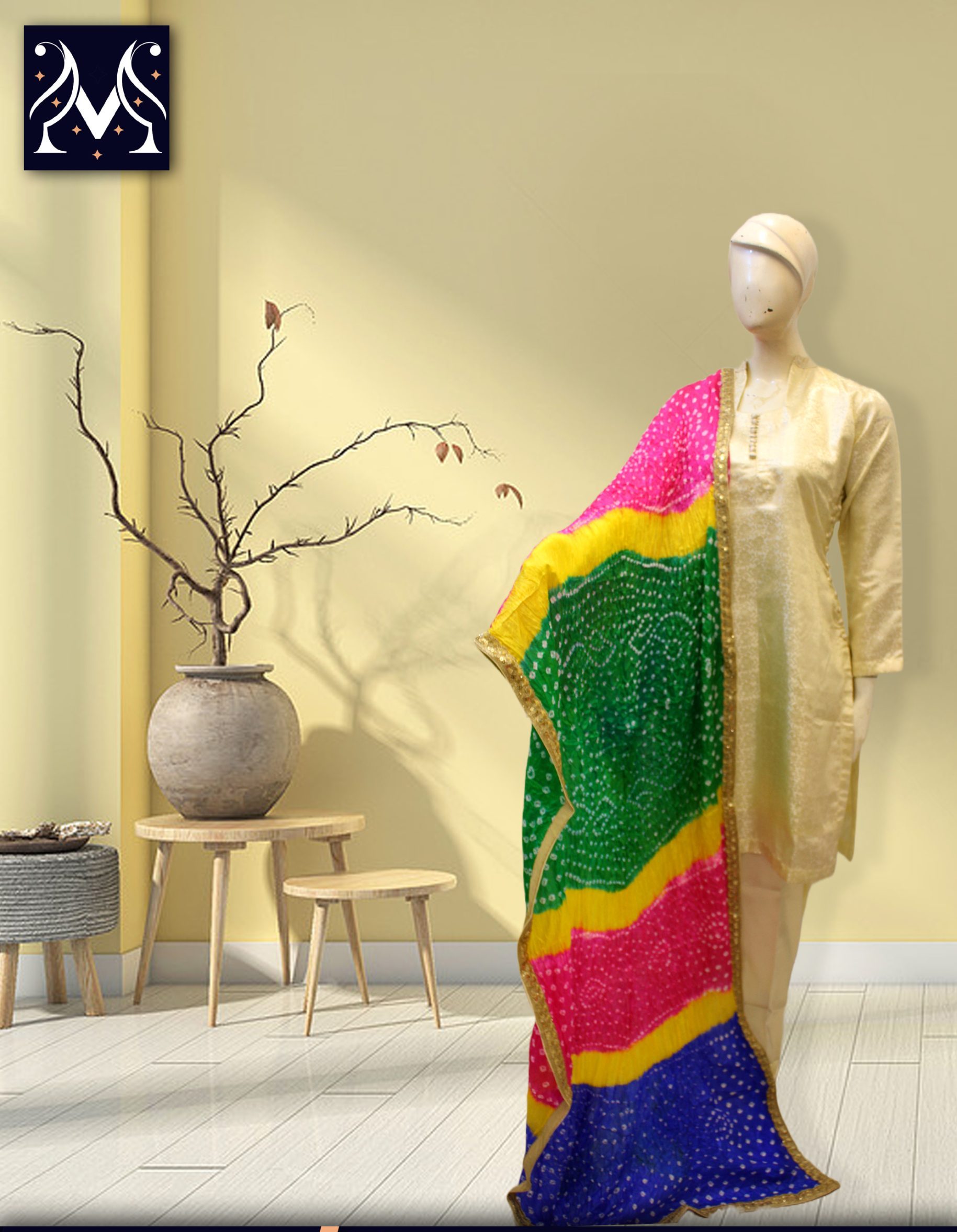 Multi-Shade Silk Dupatta with Four-Side Paltawa Lace Work